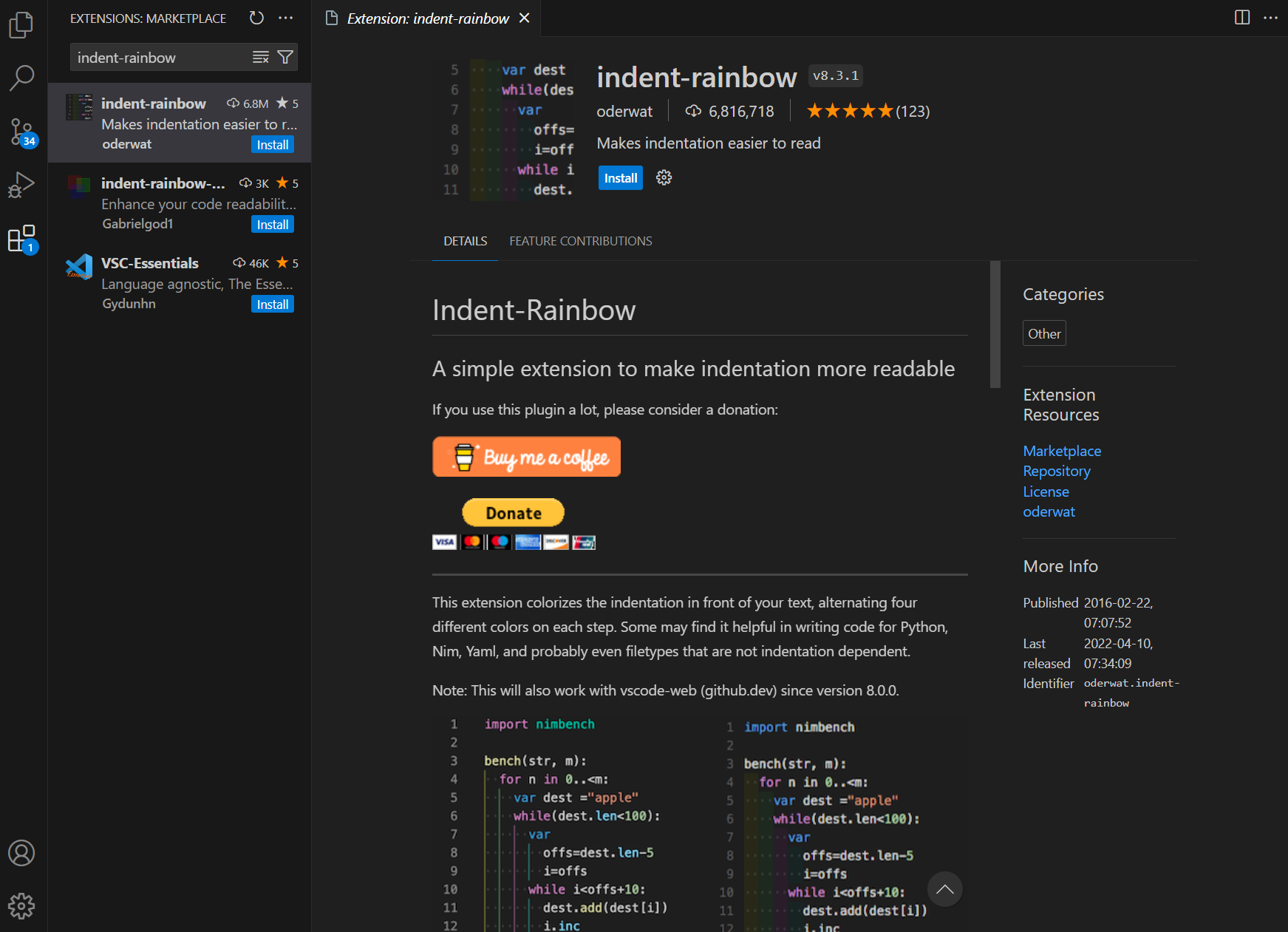 3. indent-rainbow