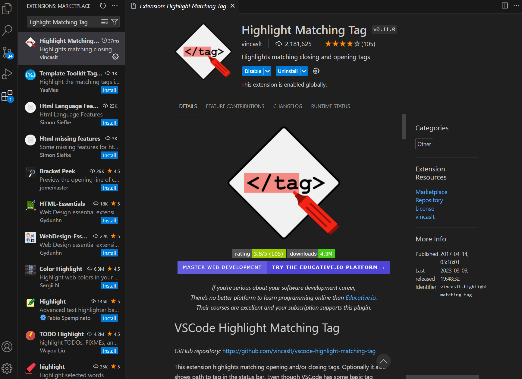 4. Highlight Matching Tag