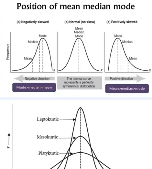 - Leptokurtic : 중앙 부분은 Mesokurtic보다 높고 뾰족하기 떄문에 이상치(outlier)가 많을 수 있음