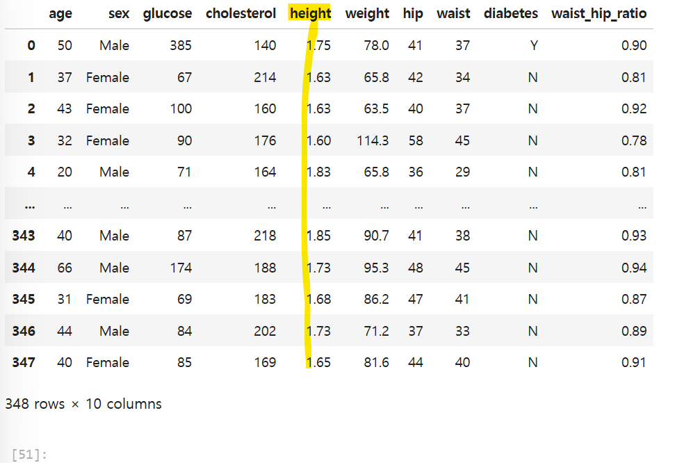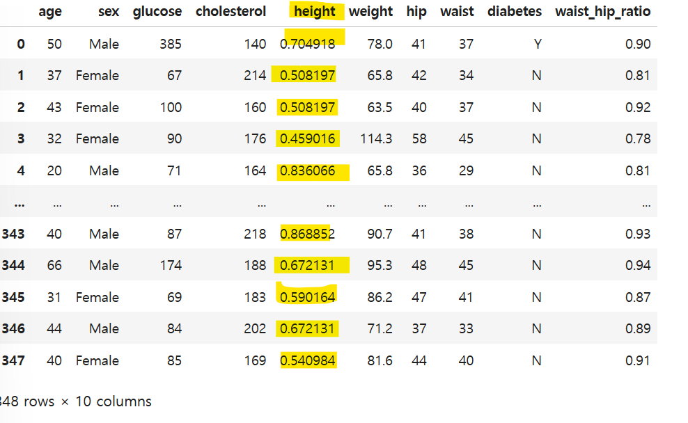 Hight컬럼에 대해 정규화를 진행해볼건데, 정규화 식은
