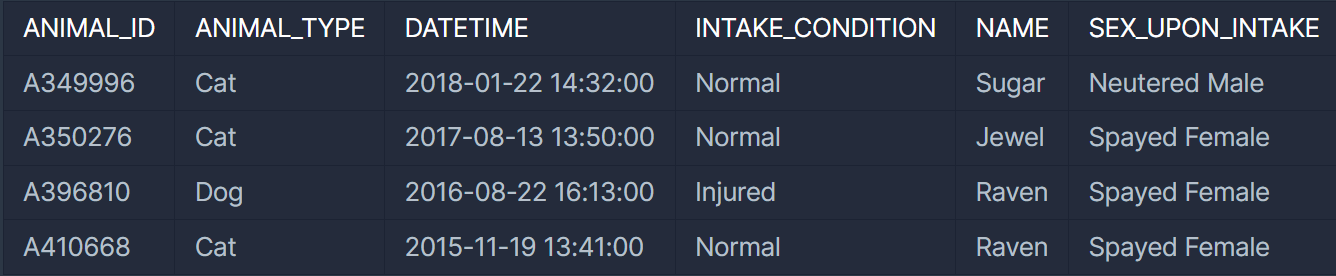 예를 들어 ANIMAL_INS 테이블이 다음과 같다면