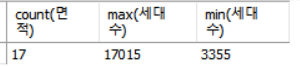 count(*), max(세대수), min(세대수) 의 필드가 group by 된거고
