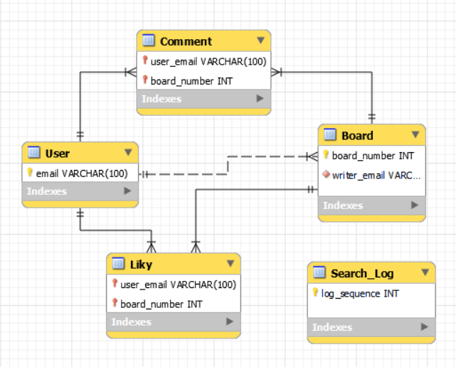 - 실선 : A테이블과 B테이블은 "식별관계", 부모테이블[A 테이블]의 PK가 외래키로써, 자식테이블[B 테이블]의 PK에 포함되는 경우