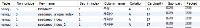 SHOW INDEX FROM Namgu;