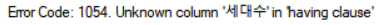 세대수라는 필드는 group by 되지 않았기때문에 사용할수 없다.