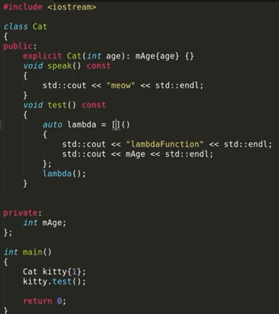 위와 같이 Cat클래스에 lambda를 사용했을 때 lambda는 Cat클래스의 로컬변수인 mAge에 접근이 불가능하다.