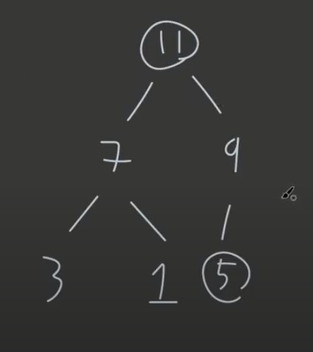 위와 같이 우선순위 큐가 있을 때 pop을 하면 최상단 부모노드인 11이 사라지고