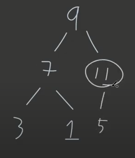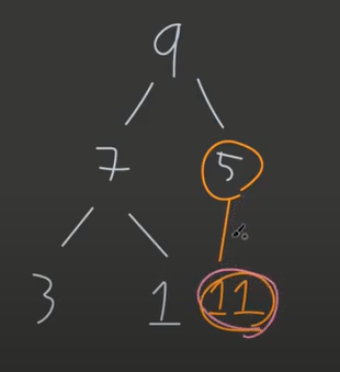 위와 같은 우선순위 큐가 있을 때 새로운 값 11이 들어오면