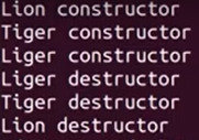 Lion과 Tiger의 순서에 따라 생성자와 소멸자가 불러와지는 순서가 달라진다.