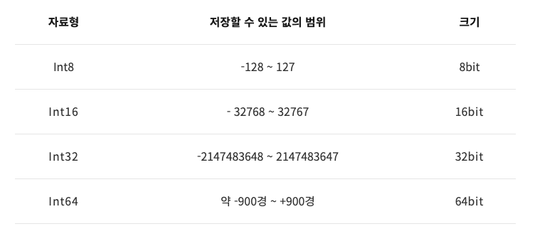 Int타입에는 음의 정수, 0, 양의 정수를 저장할 수 있고, 부호 비트를 통해 음수와 양수를 표현합니다.