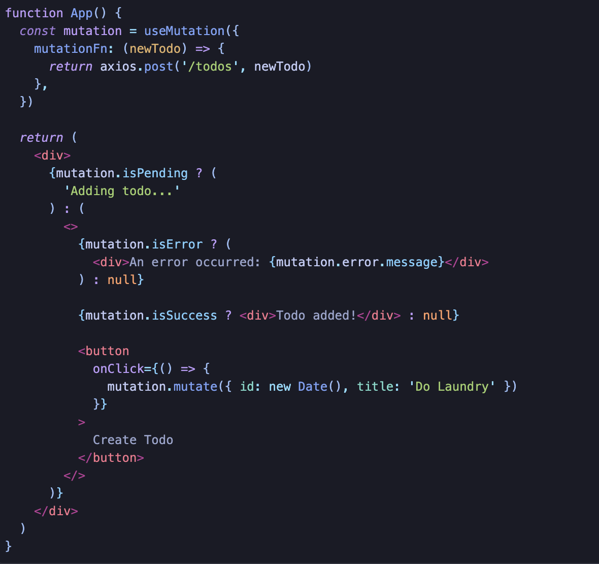 UI 접근 방식은 mutate state로 isPending을 이용한다.