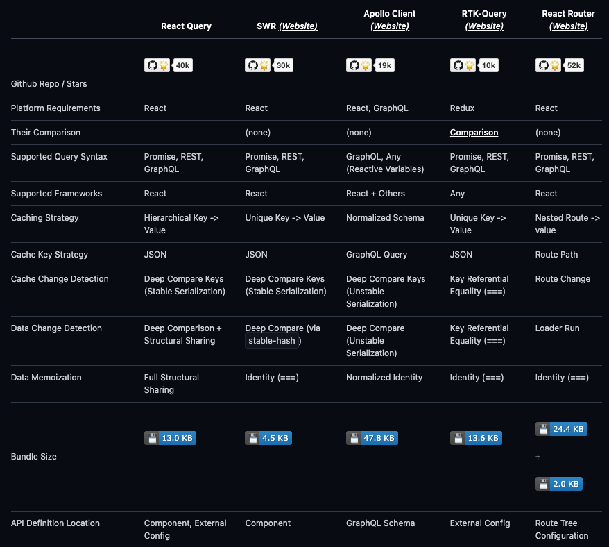 대부분의 기존 상태 관리 라이브러리는 클라이언트 상태 관리에는 적합하지만 비동기 서버 상태 관리에는 적합하지 않다. 서버 상태 관리에 있어서 직면하는 여러 이슈가 발생할 수 있다.