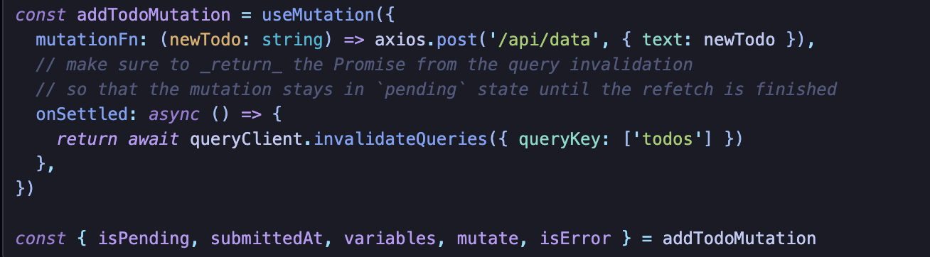 Mutation 이후 클라이언트와 서버 동기화가 이뤄지도록 하는 것이다.