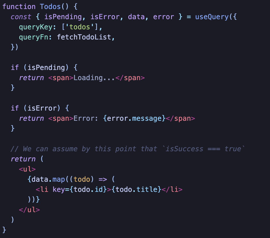 간단히 정리하면 isLoading === isFetching && isPending이다.