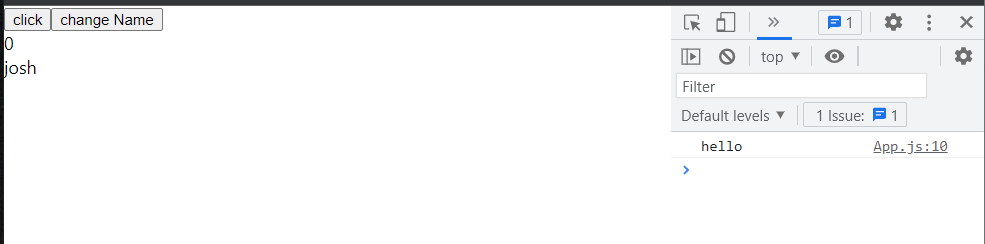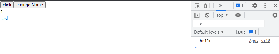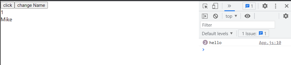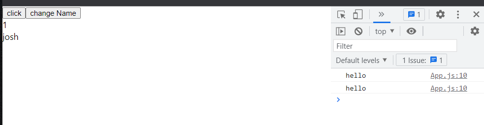 click 버튼을 선택했을 때, hello는 1번 밖에 출력되지 않았다.