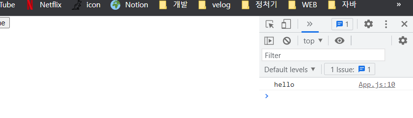 click 버튼을 눌렀을 때, console창에 hello가 한 번 더 출력 되었다.