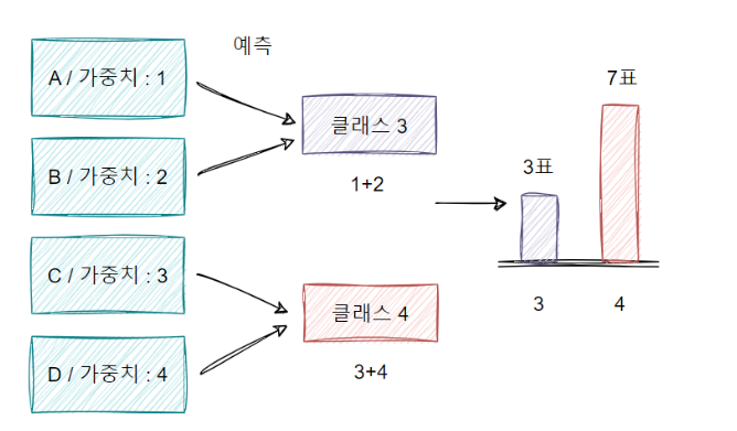 가중치 부여는 앙상블 모델에서 각각의 분류기가 최정 결정에 미치는 영향을 조정하는 방식