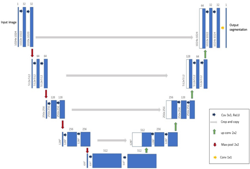- 2 x 2 Up-conv을 통한 Upsampling- Output: 1 x 1 conv를 통한 Segmentation map 생성
