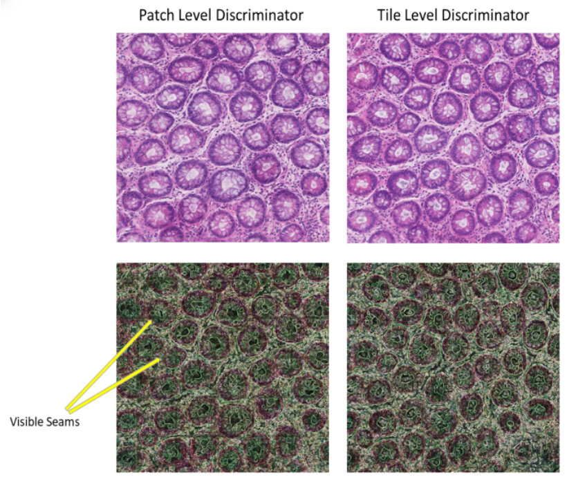 Tile Level Discriminator - Patch 단위 생성된 이미지를 Stiching을 통한 Tile 단위로 Discriminator 동작하여 Patch 경계의 이음새를 최소화하고 Local, Global 형태학적 Coherence 유지 가능