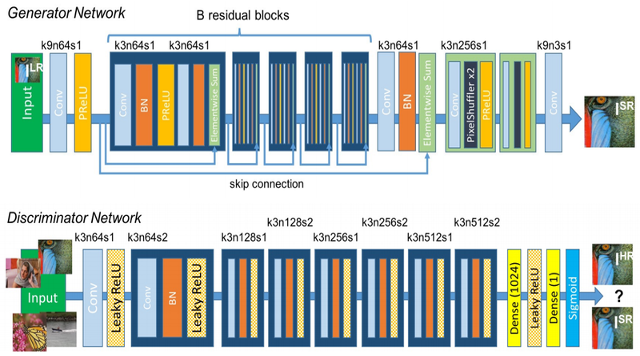 SR-GAN의 경우, 저해상도 이미지로부터 최대 4배까지 확대하여 고해상도 이미지를 생성하고자 합니다. 특히, 해당 방식에서는 skip-connection, PixelShuffle로 업샘플링을 수행합니다.