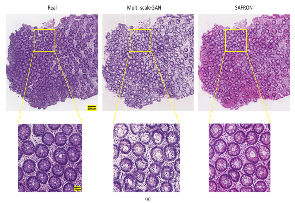 이번에 리뷰하고자 하는 논문은 SAFRON: Stitching Across the Frontier Network for Generating Colorectal Cancer Histology Images 입니다. 해당 논문은 GAN을 통해서 Histology image에 대해서 데이터를 생성하고자 하는 Medical ai의 논문 중 하나입니다.