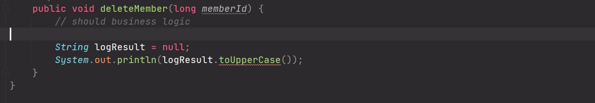 서비스계층에서 의도적으로 null값을 발생시키고 있다
