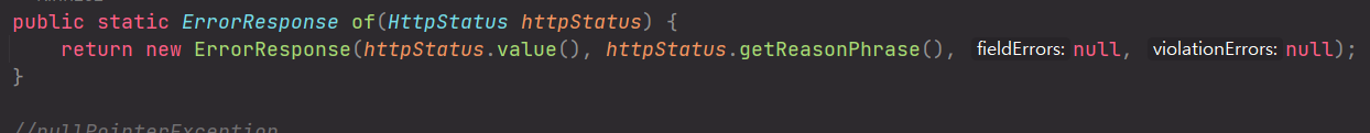 ResponseEntity는 ErrorResponse.of 메서드를 통해 처리된 ErrorResponse와 httpStatus을 받아 JSON값을 리턴할 것이다