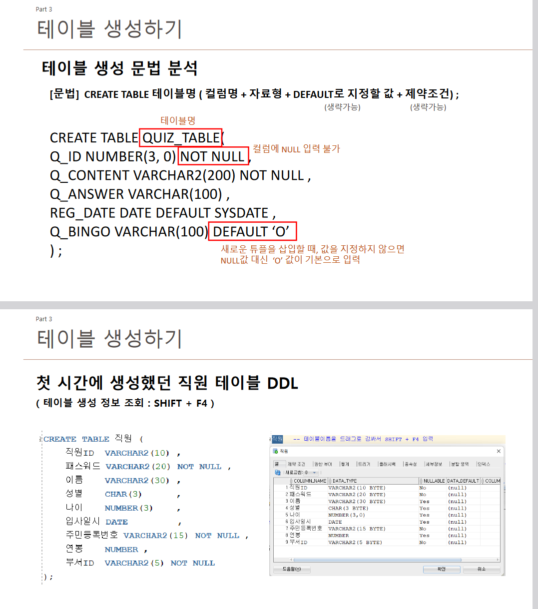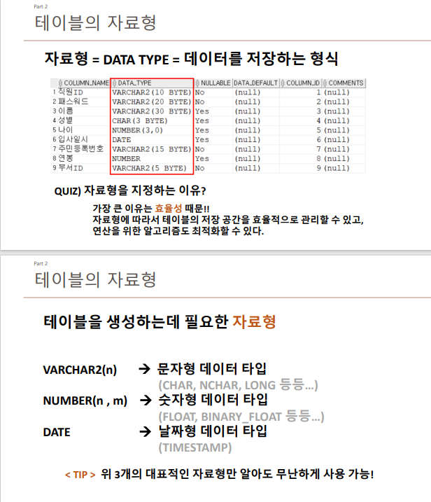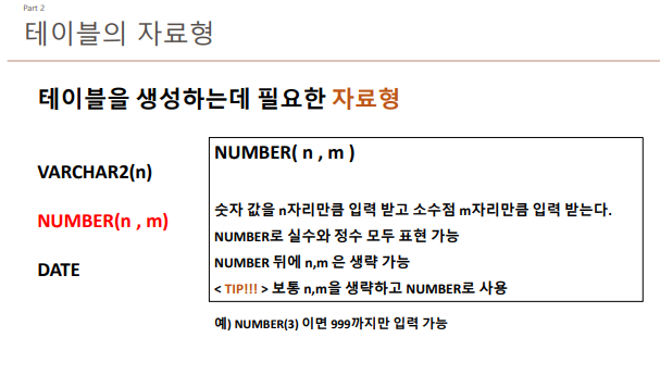 나이 NUMBER DEFAULT 0 -- 숫자 > 문자 쎄다.