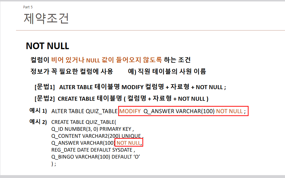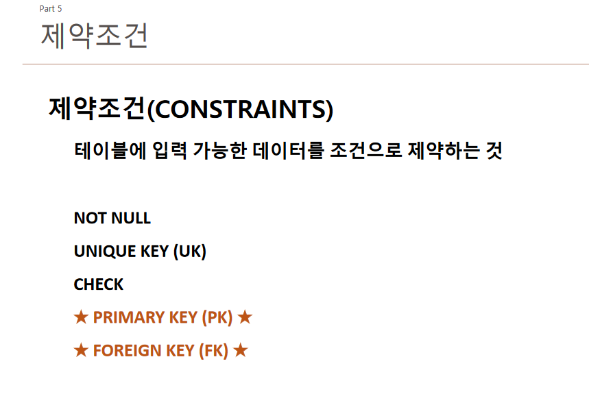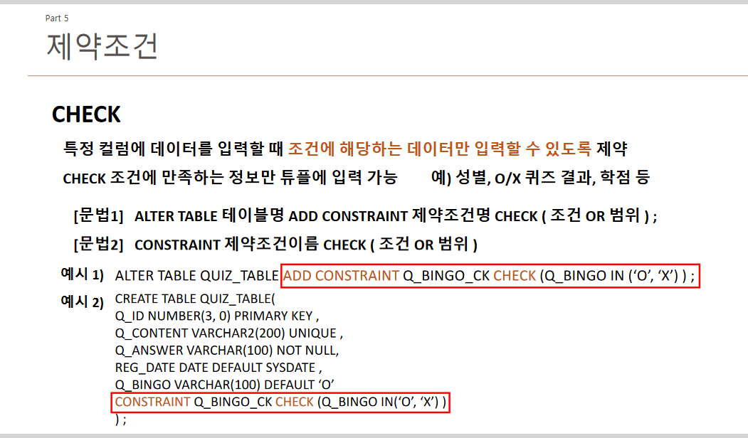 테이블에 입력 가능한 데이터를 조건으로 제약하는 것