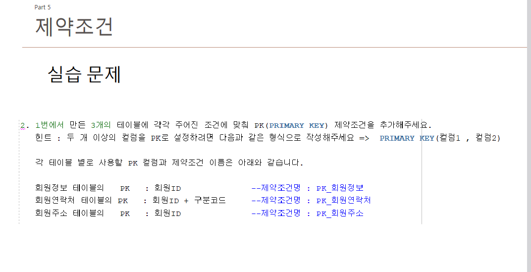 ALTER TABLE 회원연락처 ADD CONSTRAINT PK_회원연락처 PRIMARY KEY(회원ID, 구분코드);