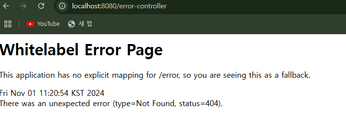 컨트롤러는 호출되지만 View를 못 찾아 Whitelabel Error Page를 응답한다.