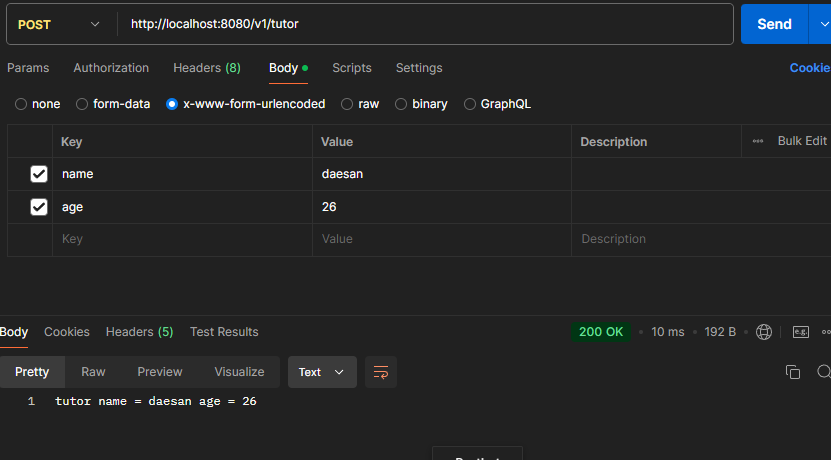 ex) http://localhost:8080/v1/tutor + x-www-form-urlencoded