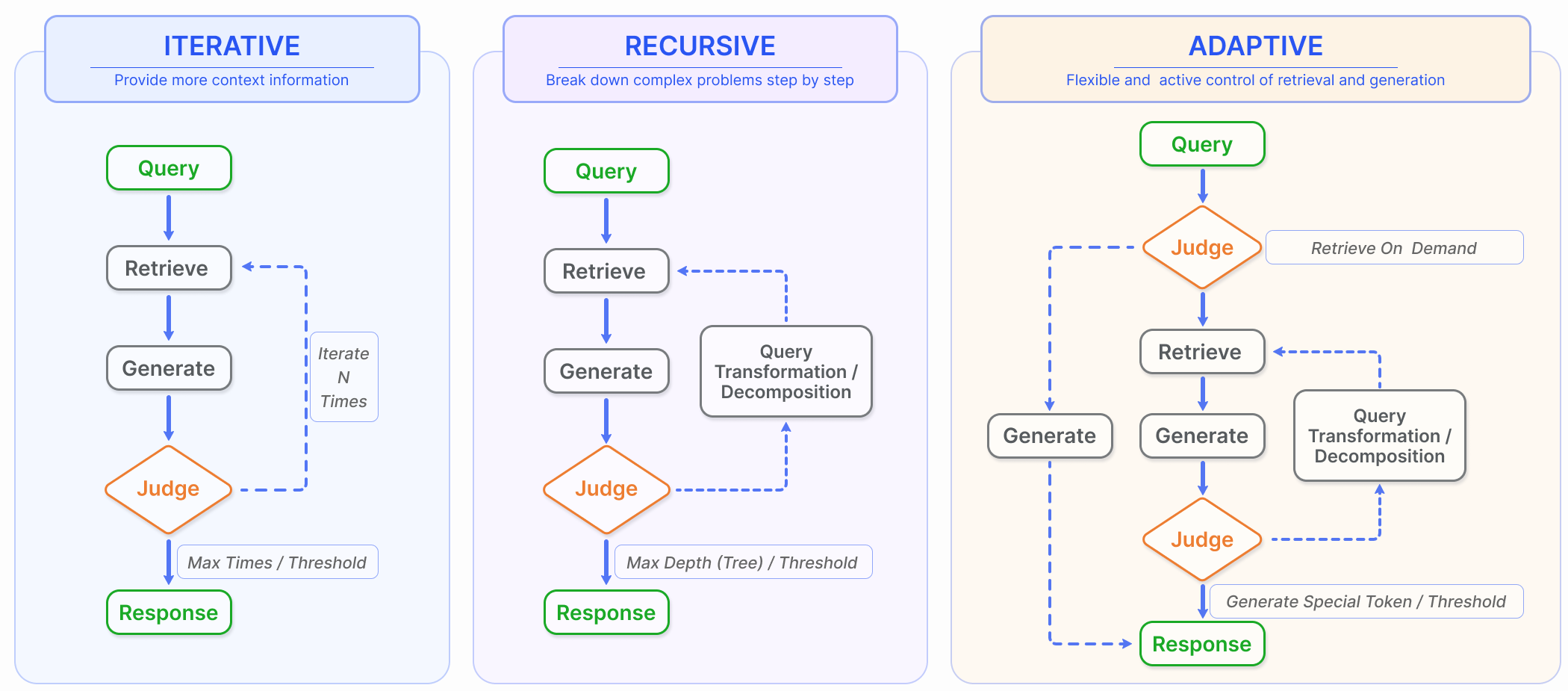 이러한 접근방식은 여러번의 검색 반복을 통해 추가적인 맥락적 참조를 제공함으로써 후속 답변 생성의 견고성을 향상시키는 것으로 나타났음. 그러나 의미적 불연속성과 무관한 정보의 축적에 영향을 받을 수 있음.