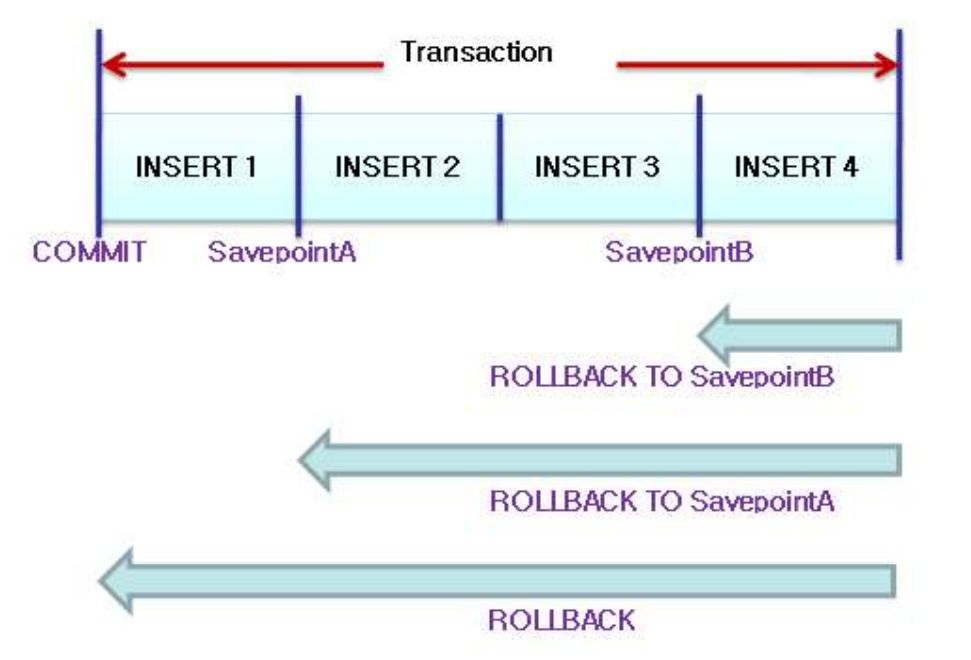 | ROLLBACK [[TO [SAVEPOINT]] savepoint_name] | rollback은 모든 미결정 데이터 변경을 버림으로써 현재의 트랜잭션을 종료합니다. rollback to savepoint_name은 savepoint와 모든 연이은 변경사항을 취소합니다. |