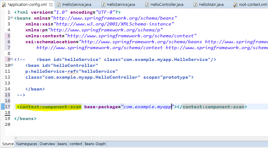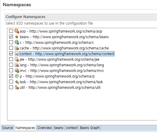 전에 작성한 application-config.xml 파일 내의 파일을 확인해보면 bean 이 체크되어있는 것으 확인 할 수 있다.