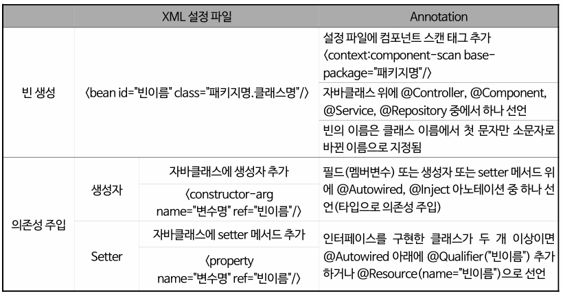 | @Qualifier | 빈의 이름으로 의존성 주입을 설정한다. @Autowired 와 같이 사용되어야 함. |