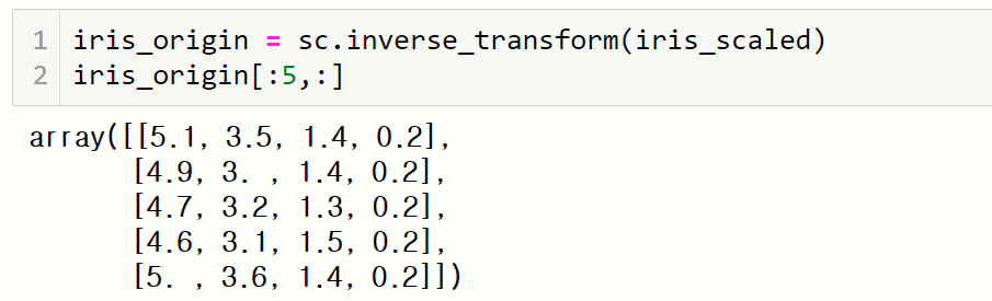 이들 클래스를 이용하면 표준화 후 표준화한 값을 원래의 값 범위로 되돌릴 수 있음