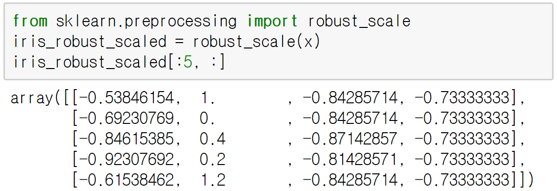 중위수와 사분위범위(interquartile range)를 사용하여 표준화
