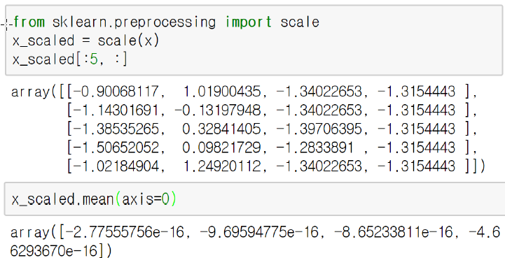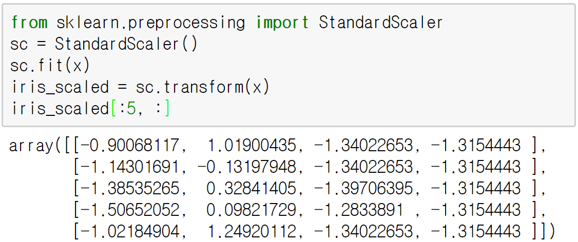 StandardScaler 객체를 이용해 표준화