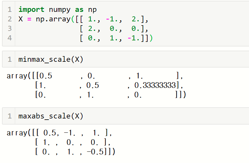 음수는 부호를 그대로 유지하는 것이 minmax_scale() 함수와 다른 점임