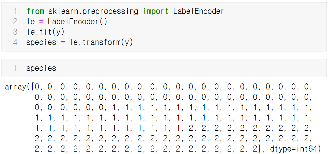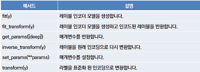 레이블 인코딩은 preprocessing 모듈의 LabelEncoder 클래스를 이용