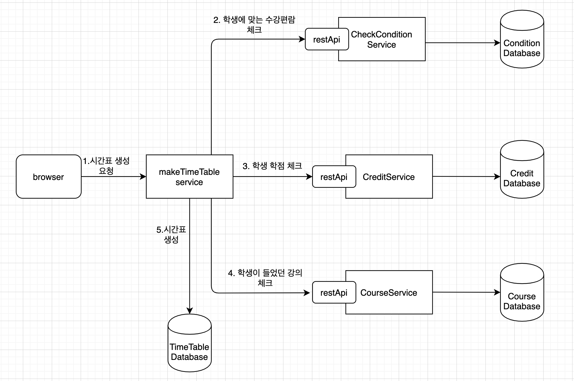 현재, 필자는 수강편람과 학생의 수강기록에 따른 시간표 생성 시스템을 구축하는 중이다. 이 시스템은 spring boot Rest api 서버를 메인으로 flask 바탕으로한 crawling서버가 있다.