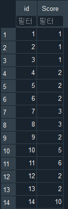 test 테이블에 닷지게임 기록이 갱신되도록 코드를 입력한다.