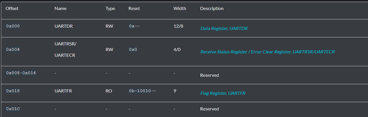 5 volatile PL011_t *Uart = (PL011_t*)UART_BASE_ADDRESS0;