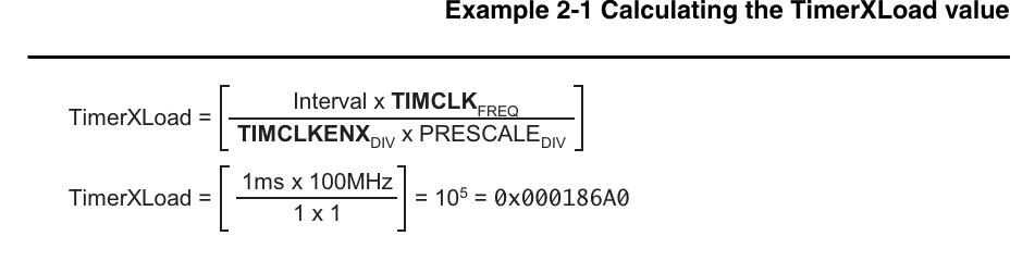 1 ms 마다 인터럽트가 발생되게 하기 위해서(interval = 1ms) TimerXLoad 값을 (10241024)/1000 으로 설정했다.