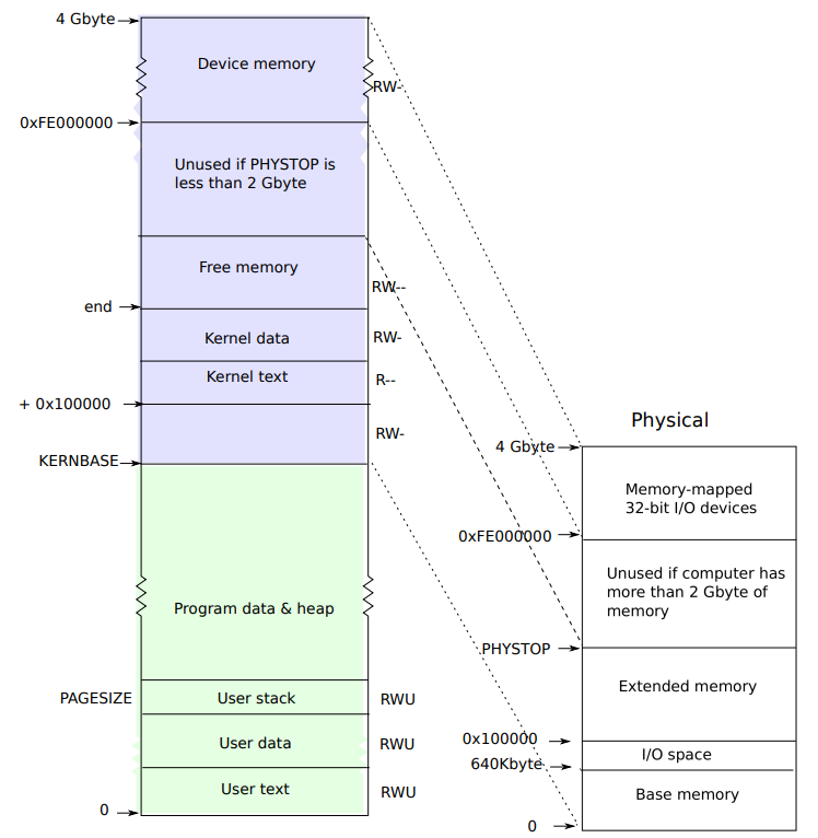 113 { (void*)data, V2P(data), PHYSTOP, PTE_W}, // kern data+memory