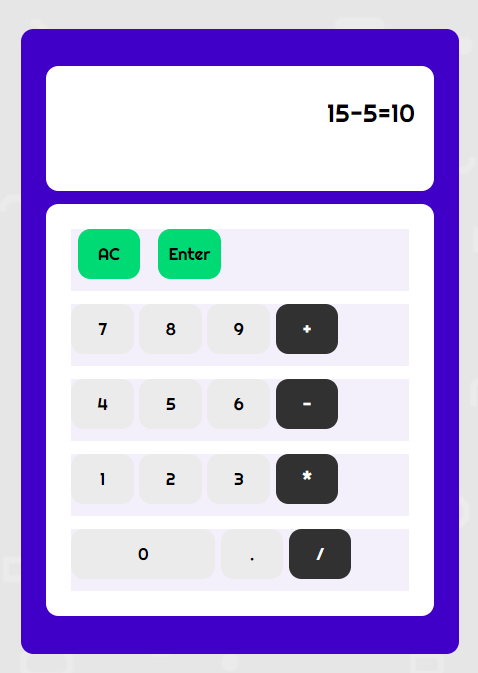 기존의 과제2 구현방식은 15를 누르고 +를 누르고 다시 숫자를 누르면 15가 지워지고 그 자리에 5가 출력되게 해야 하는데 15를 지우고 5를 입력하는게 복잡하다고 생각이 들어서 그냥 처음부터 숫자1,연산자,숫자2,결과값을 한 줄에 나열되게 했다. 5시에 줌으로 코드 리뷰를 했었는데 블로그 작성이 끝나면 레퍼런스를 참고해서 다시 해볼 예정