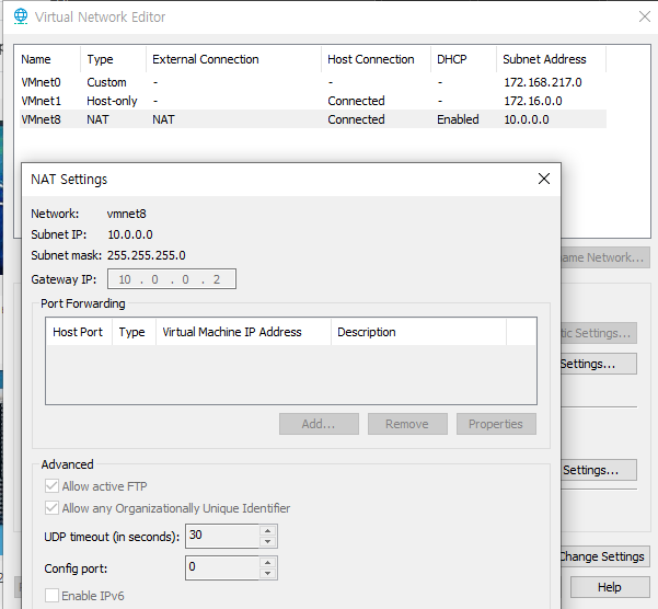 기입해야 할 정보는 VMware의 [Edit -> Virtual Network Editor]에 있다. DHCP Settings와 NAT settings를 확인해보자.