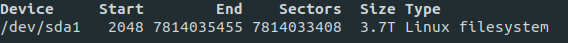 (parted) mkpart primary 0.00TB X.XXTB # -> X.XX에는 자신의 하드 용량 입력.
