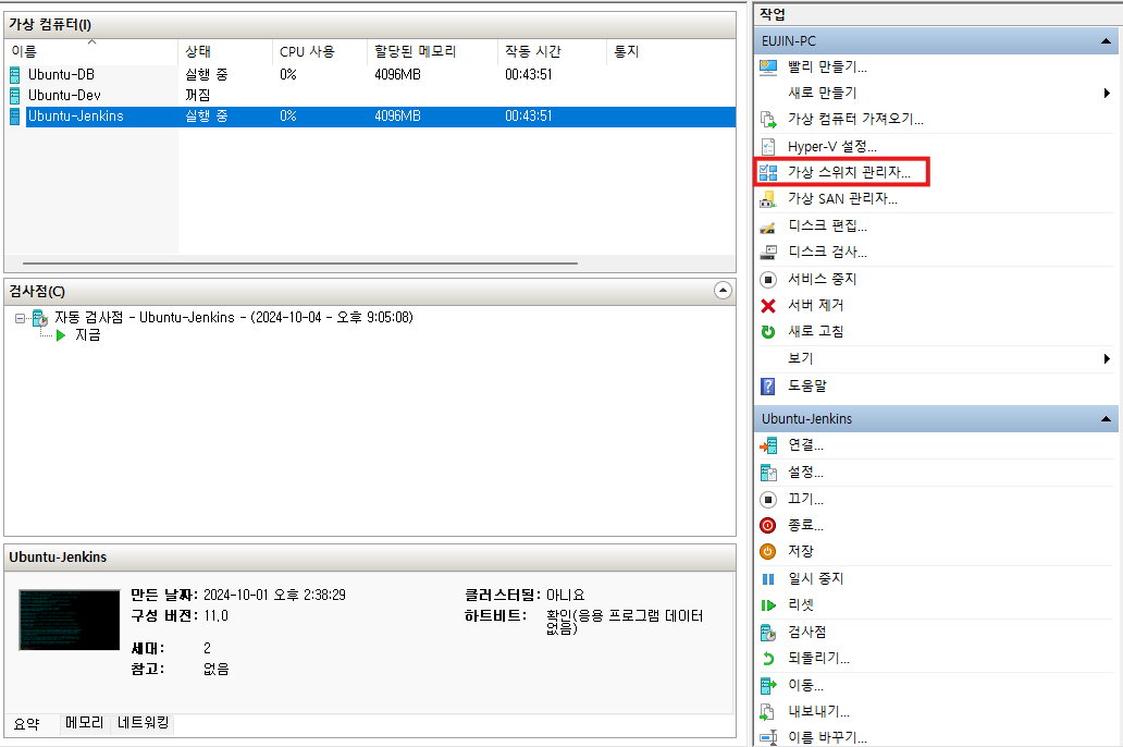 가상 스위치 관리자 선택